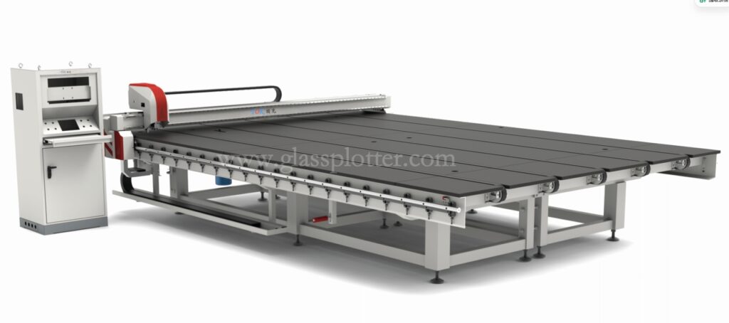 It has automatic pressure control, automatic edge finding, optimization software, and air floating system. It has the